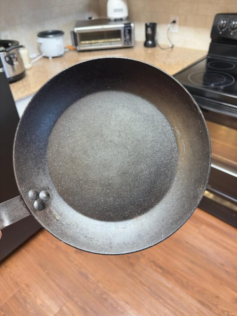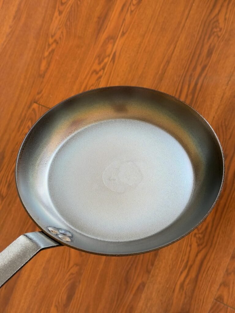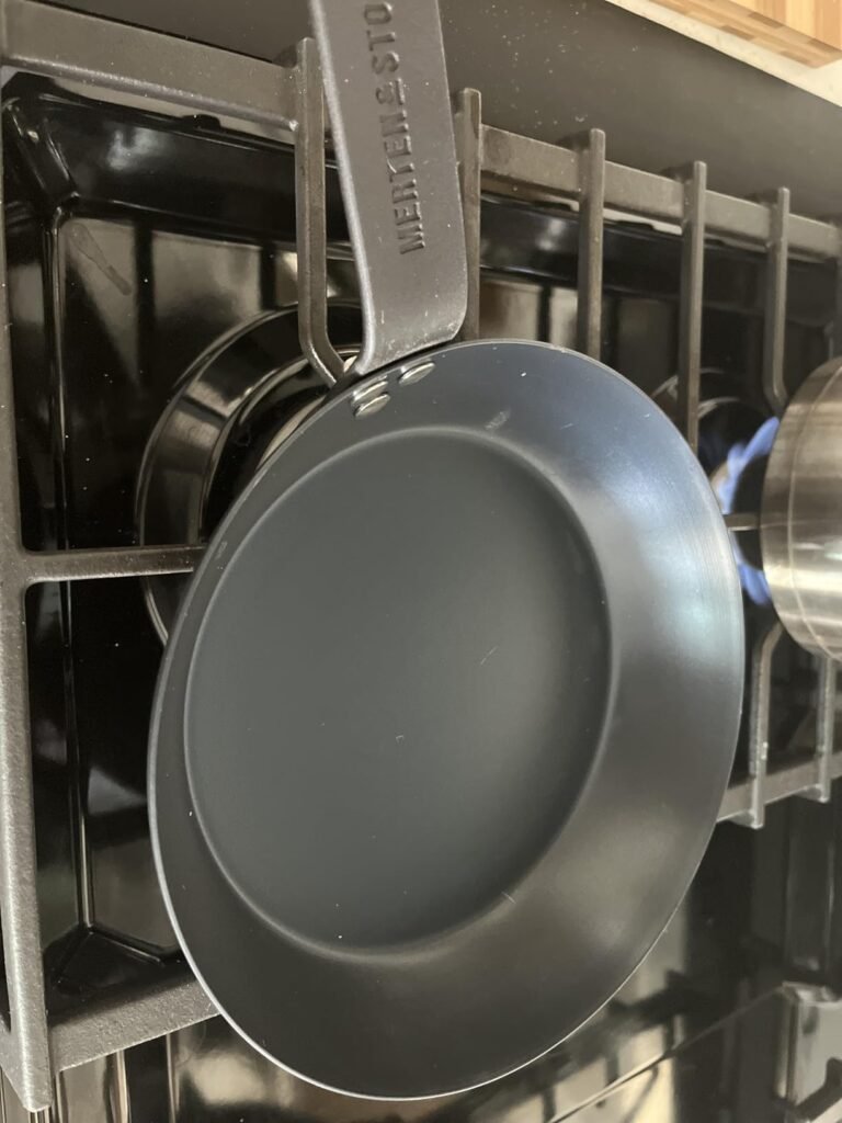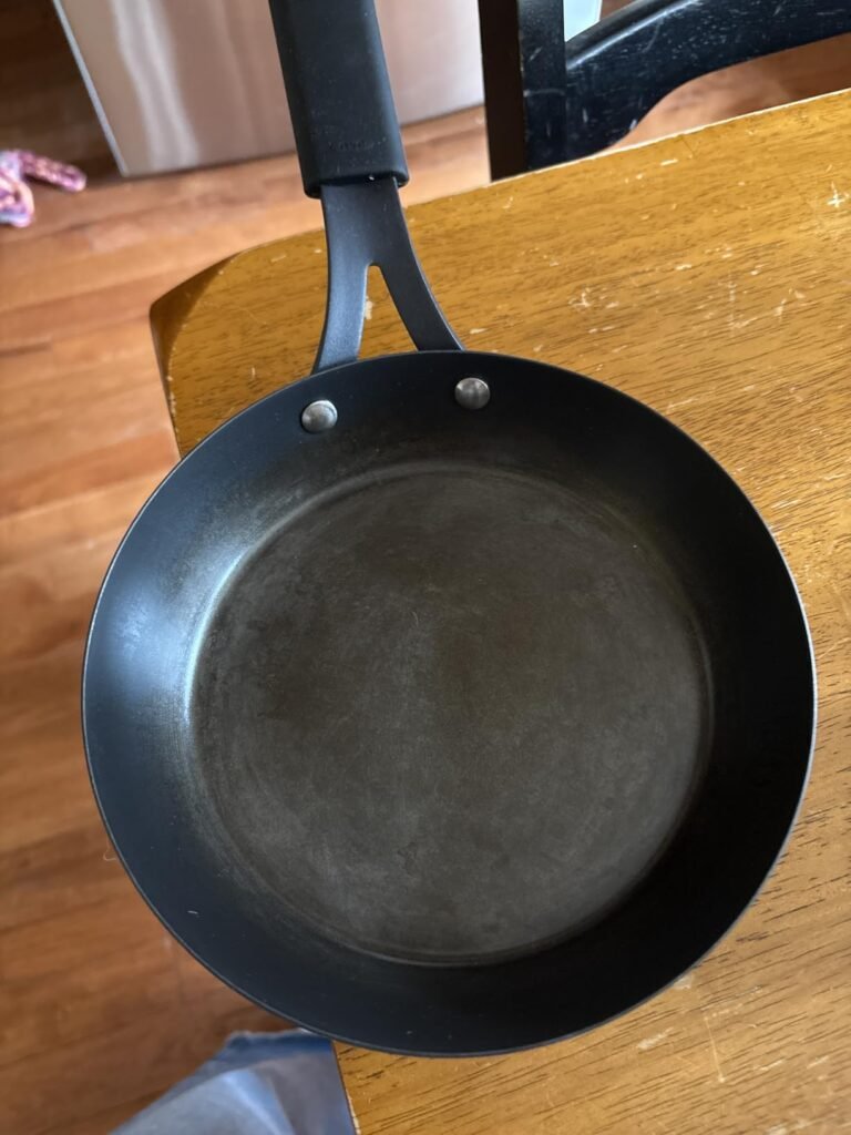 But for all of carbon steel’s virtues—high heat tolerance, nonstick surface, light weight—it has one main drawback. Carbon steel pans aren’t recommended for cooking acidic foods like tomatoes, citrus, and vinegar, which can react with the iron in the pan and yield a metallic taste in your dish. This is especially true when the pan is new and needs more layers of seasoning. A well-used and well-seasoned pan could probably tolerate the occasional handful of chopped tomatoes or squeeze of lemon to make a pan sauce. But I’d feel comfortable doing that only after six months to a year of heavy use.
